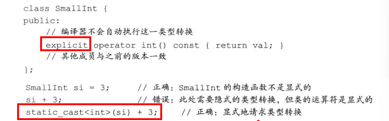 当类中包含类型转换时,必须确保在类类型和目标类型之间只有唯一的转换方式,否则编译器会不知道该选择哪个转换,导致二义性错误。