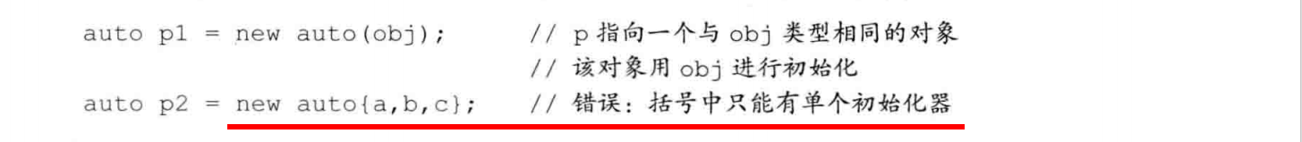 用auto从初始化器推断我们想要分配的对象的类型,但括号内只能有单个初始化器。