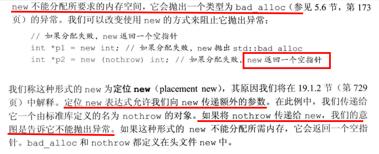默认会抛出back_alloc异常,但可以使用定位new来阻止抛出异常。