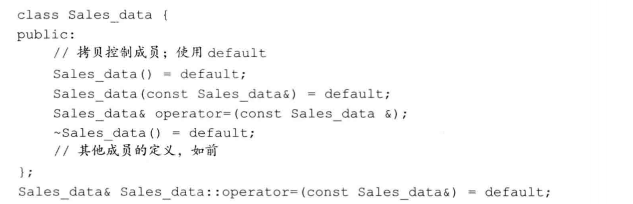自定义了拷贝控制成员后编译器不会再自动生成合成的版本,如果还想使用合成版本,就在定义拷贝控制成员时加上=default来显式要求。