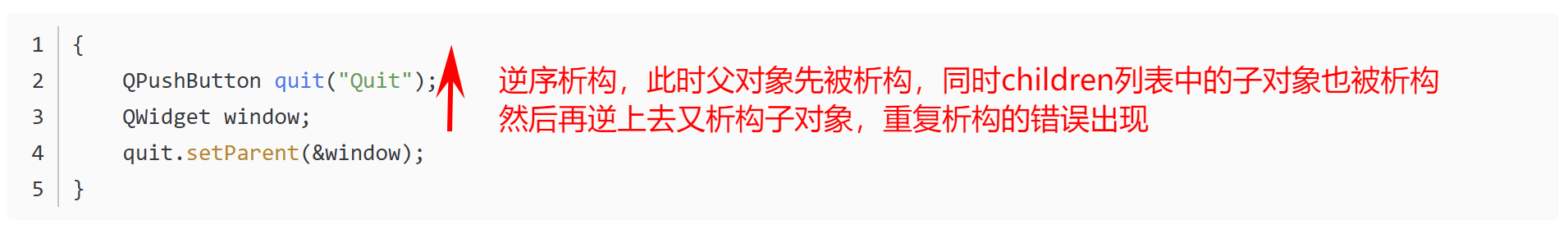 当父对象析构时,children里的所有子对象也会一起析构;如果子对象先被析构,会自动被父对象的children列表移除。